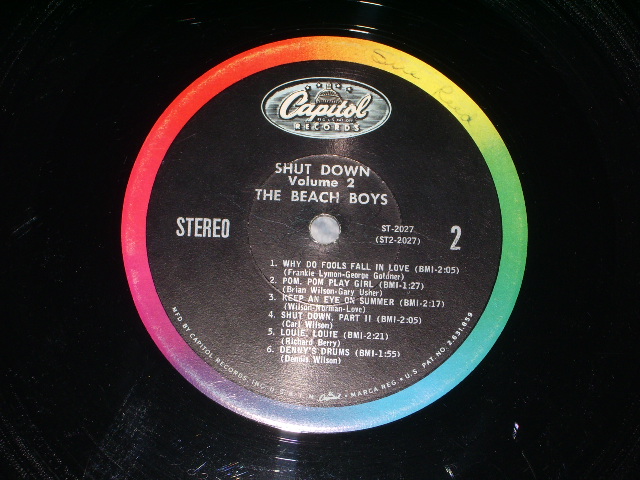 ※サイト内のすべての画像のコピー・無断転用を禁止しています。個人・法人様のサイト(ブログ・HP・掲示板等)でのご紹介で使用されたい場合は前もってご連絡下さい ARTIST : The BEACH BOYS TITLE : SHUT DOWN VOLUME 2 LABEL : CAPITOL CONDITIONJACKETDISK VG+++ Ex+ SMALL WRITING ON LABEL SCRATCHE ON SIDE-A-2 : VG+++ HAVE A SCRATCHE ,FEEL THE POP NOISE No. : ST-2027OTHERS : RELEASE YEAR : COUNTRY : 1964 US ORIGINAL STEREO LP MATRIX # : A) ST1-2027 A-7 1 A) ST2-1998-A- 3 1 ※サイト内のすべての画像のコピー・無断転用を禁止しています。 個人・法人様のサイト(ブログ・HP・掲示板等)でのご紹介で使用されたい場合は前もってご連絡下さい