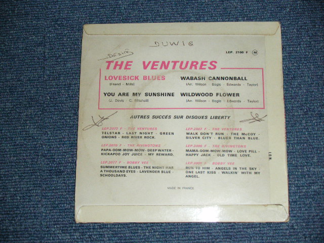 ARTIST : THE VENTURES TITLE : PLAY THE COUNTRY LOVESICK BLUES LABEL : LIBERTY CONDITION JACKET DISK FC) Ex BC) VG+++ Ex WRITING ON BACK COVER No. : LEP-2100F OTHERS : RELEASE YEAR : 1960's COUNTRY : FRANCE ORIGINAL RARE!!! With NOKIE'S PICTURE on FRONT COVER
