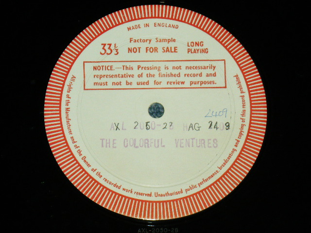 THE VENTURES - THE COLORFUL VENTURES ( MATRIX # AXL-2050-2B & 3B ) / 1961?? UK ORIGINAL TEST PRESS One Sided LP [LONDON HAG-2409]