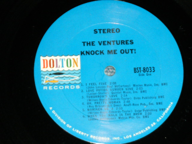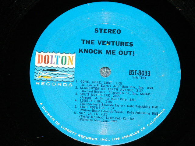 THE VENTURES - KNOCK ME OUT ( US AMERICA ORIGINAL "BLUE with BLACK Print Label :Without or NONE "TOMORROW'S LOVE" Version : Matrix Number BST-8033 2 SIDE-1 1A1/ BST-8033 SIDE-2 1A : Ex+++/MINT- ) / 1965 US ORIGINAL "BLUE with BLACK BLACK Print Label" STEREO Used LP [DOLTON BST-8033 STEREO]
