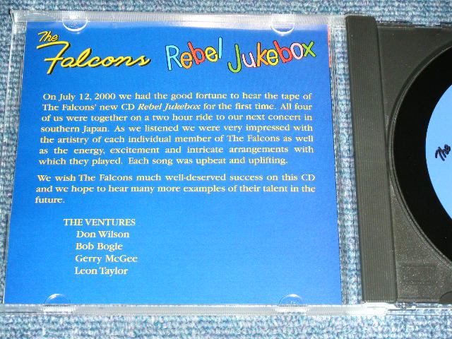 ※サイト内のすべての画像のコピー・無断転用を禁止しています。個人・法人様のサイト(ブログ・HP・掲示板等)でのご紹介で使用されたい場合は前もってご連絡下さいARTIST : THE FALCONS TITLE : REBEL MUSIC (Linner Notes by The VENTURES ) LABEL : FALCON BEACH MUSIC CONDITIONJACKETDISKBRAND NEWBRAND NEW No. : FBM-981OTHERS : RELEASE YEAR : 1 COUNTRY : . 2001 CANADA CANADIAN Brand New CD RARE NOW! OUT-OF-PRINT !!!!! SOUND LIKE THE VENTURES