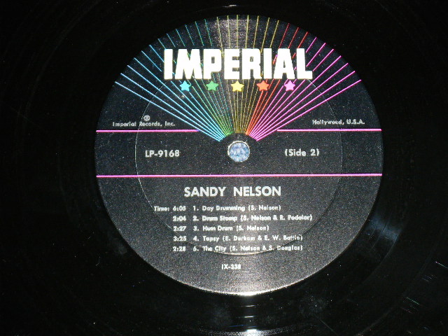 ARTIST : SANDY NELSON TITLE : DRUNS ARE MY BEAT!LABEL : IMPERIAL CONDITIONJACKETDISKEx++Ex+++ EDGE SPLIT AT BOTTOM 4cm NICE CLEAN COPY!No. : LP-9168 MONOOTHERS : RELEASE YEAR : COUNTRY : 1st Press BLACK with 5 STARS label 1962 US AMERICA ORIGINAL MONO Used LP ※サイト内のすべての画像のコピー・無断転用を禁止しています。 個人・法人様のサイト(ブログ・HP・掲示板等)でのご紹介で使用されたい場合は前もってご連絡下さい
