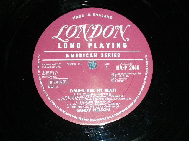 ARTIST : SANDY NELSON TITLE : DRUNS ARE MY BEAT!LABEL : IMPERIAL CONDITIONJACKETDISKEx++Ex+++ No. : HA-P 2446 MONOOTHERS : RELEASE YEAR : COUNTRY : UK 1st Press MAROON label 1962 UK ENGLAND ORIGINAL MONO Used LP ※サイト内のすべての画像のコピー・無断転用を禁止しています。 個人・法人様のサイト(ブログ・HP・掲示板等)でのご紹介で使用されたい場合は前もってご連絡下さい