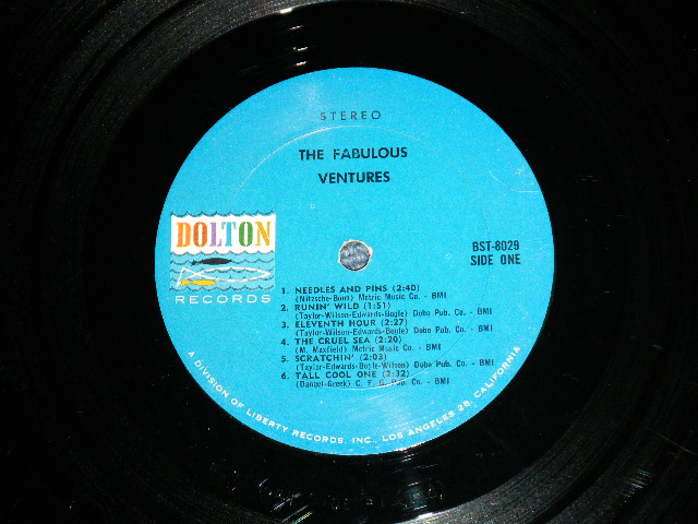※サイト内のすべての画像のコピー・無断転用を禁止しています。個人・法人様のサイト(ブログ・HP・掲示板等)でのご紹介で使用されたい場合は前もってご連絡下さい ARTIST : THE VENTURESTITLE : THE FABULOUS VENTURESLABEL : DOLTON CONDITIONJACKETDISKEx++Ex++ Looks:Ex+ EDGE SPLIT AT BOTTOM DAMAGED AT THE CORNER LIGHT SCRATCHE No. : BST-8029 STEREO OTHERS : RELEASE YEAR : COUNTRY : 1964 US AMERICA ORIGINAL "2nd press Label" STEREO Used LP DARK BLUE WITH BLACK PRINT Label: Matrix Number ( HAND WRITING STYLE) A) BST-8029 SIDE#1 (1-A) B) BST-8029 SIDE 2 1B NUMBER "4" CREDIT ON BACK COVER'S BOTTOM ※サイト内のすべての画像のコピー・無断転用を禁止しています。 個人・法人様のサイト(ブログ・HP・掲示板等)でのご紹介で使用されたい場合は前もってご連絡下さい