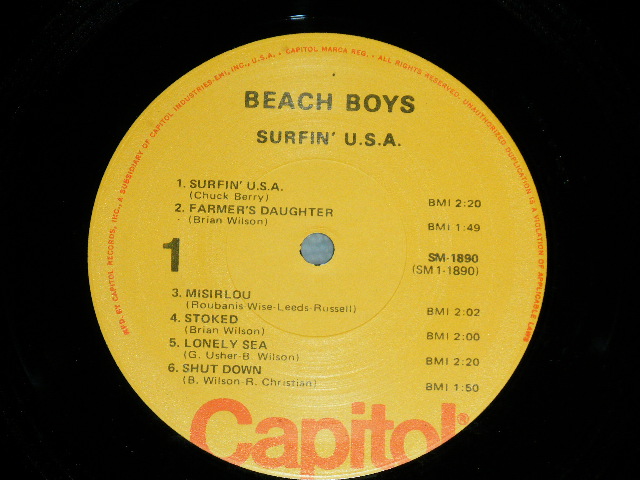 ※サイト内のすべての画像のコピー・無断転用を禁止しています。個人・法人様のサイト(ブログ・HP・掲示板等)でのご紹介で使用されたい場合は前もってご連絡下さい ARTIST : The BEACH BOYS TITLE : SURFIN' USA STRAIGHT REISSUE 12 TRACKS Version LABEL : CAPITOL CONDITIONJACKETDISK Ex+++ MINT- No. : ST-1890OTHERS : RELEASE YEAR : COUNTRY : 1977 US AMERICA "YELLOW with ORANGE CAPITOL Logo on Label" REISSUE UsedLP MATRIX # HAND WRITING STYLE A) SM-1-1890-J-3 B)SM-2-1890-J-3 ※サイト内のすべての画像のコピー・無断転用を禁止しています。 個人・法人様のサイト(ブログ・HP・掲示板等)でのご紹介で使用されたい場合は前もってご連絡下さい