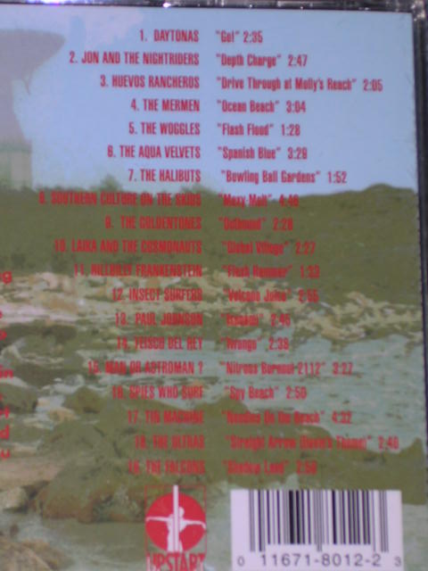 | ARTIST : | V.A. | | TITLE : | BEYOND THE BEACH | | LABEL : | UPSTART | | CONDITION | | JACKET | DISK | | NEW | NEW | | | No. : | UPCD-012 | | OTHERS : | RELEASE YEAR : 1994 COUNTRY : USA GREAT NEO SURF INSTRO / SURF GARAGE INSTRO |  |