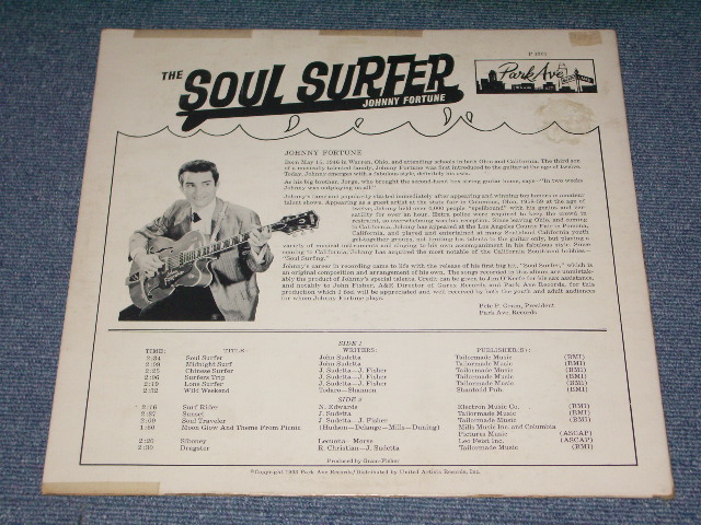 | ARTIST : | JOHNNY FORTUNE | | TITLE : | SOUL SURFER | | LABEL : | PARK AVE | | CONDITION | | JACKET | DISK | | Ex++ | Ex+++ Looks: Ex+ | SEAM SPLIT at TOP SMALL WRITING ON BACK COVER | | No. : | P-1301 | | OTHERS : | RELEASE YEAR : COUNTRY : 1963 US ORIGINAL GARAGE SURFIN' INSTRUMENTAL GUITARIST! SOUND LIKE THE VENTURES!!!! B-1 : NOKIE EDWARDS SONG,PLAYS FAST UPTYEMPO TUNE!!! | ※サイト内のすべての画像のコピー・無断転用を禁止しています。 個人・法人様のサイト(ブログ・HP・掲示板等)でのご紹介で使用されたい場合は前もってご連絡下さい  |