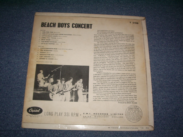 | ARTIST : | The BEACH BOYS | | TITLE : | CONCERT | | LABEL : | CAPITOL | | CONDITION | | JACKET | DISK | | Ex+ | Ex+ | | | No. : | T-2198 MONO | | OTHERS : | RELEASE YEAR : COUNTRY : 1964 UK ORIGINAL MONO LP MATRIX # : A) T 1 -2198-1N A) T 2 -2198-1N | ※サイト内のすべての画像のコピー・無断転用を禁止しています。 個人・法人様のサイト(ブログ・HP・掲示板等)でのご紹介で使用されたい場合は前もってご連絡下さい  |