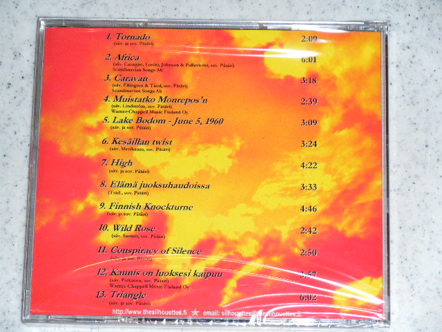 | ARTIST : | THE SILHOUETTES | | TITLE : | RAUTALANKARENESSANSSI | | LABEL : | SILHOUETTES | | CONDITION | | JACKET | DISK | | SEALED | SEALED | | | No. : | EBEAT52007 | | OTHERS : | RELEASE YEAR : COUNTRY : 2010 FINLLAND Brand New SEALED CD FINLAND'S EUROPEAN STYLE ROCKIN' INST. RELEASED FROM BANDSELF LABEL |  |