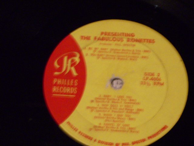 | ARTIST : | THE RONETTES | | TITLE : | ...PRESENTING THE FABULOUS RONETTES | | LABEL : | PHILLES PHLP | | CONDITION | | JACKET | DISK | | VG+++ | VG++ | HAVE A SOME SCRATCHES A-3 : JUMP / SCRATCHE | | No. : | PHLP-4006 | | OTHERS : | RELEASE YEAR : COUNTRY : US ORIGINAL ..LP 1964 RELEASE. 1964 Release YELLOW LABEL MONO REAL ORIGINAL PHILLES PRESS ( NOT CAPITOL RECORD CLUB ). |  |