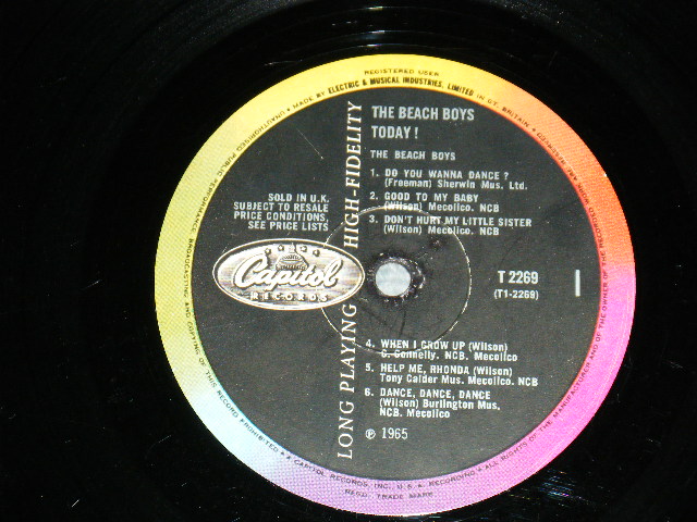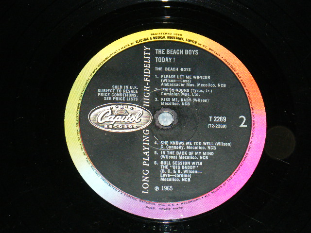 The BEACH BOYS - THE BEACH BOYS TODAY (Matrix #A)T1-2269-1G 1 R B)T2-2269-1G 1 R)(Ex++, Ex/Ex+ Looks:Ex+) / 1966 UK ENGLAND ORIGINAL 1st Press "BLACK with RAINBOW Label" MONO Used LP[CAPITOL T-2269 MONO]