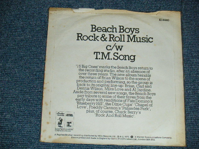THE BEACH BOYS - A)ROCK AND ROLL MUSIC B)T.M. SONG (VG++/Ex+++ SBRK) / 1976 UK ENGLAND ORIGINAL Used 7" 45rpm Single With PS[REPRISE K-14440]