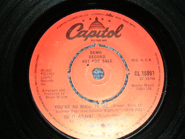THE BEACH BOYS - A)CALIFORNIA GIRLS B) YOU'RE SO GOOD TO ME / DO IT AGAIN ( - /Ex+++, Ex++) / 1967 UK ENGLAND REISSUE "PROMO" Used 7" 45rpm
