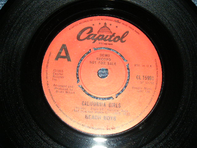 THE BEACH BOYS - A)CALIFORNIA GIRLS B) YOU'RE SO GOOD TO ME / DO IT AGAIN ( - /Ex+++, Ex++) / 1967 UK ENGLAND REISSUE "PROMO" Used 7" 45rpm [CAPITOL CL-15991]
