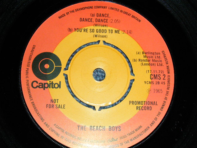 THE BEACH BOYS - A)BARBARA ANN B) DANCE, DANCE, DANCE ( - /Ex++, Ex++) / 1972 UK ENGLAND REISSUE "PROMO OINLY" Used 7" 45rpm [CAPITOL CMS-2]