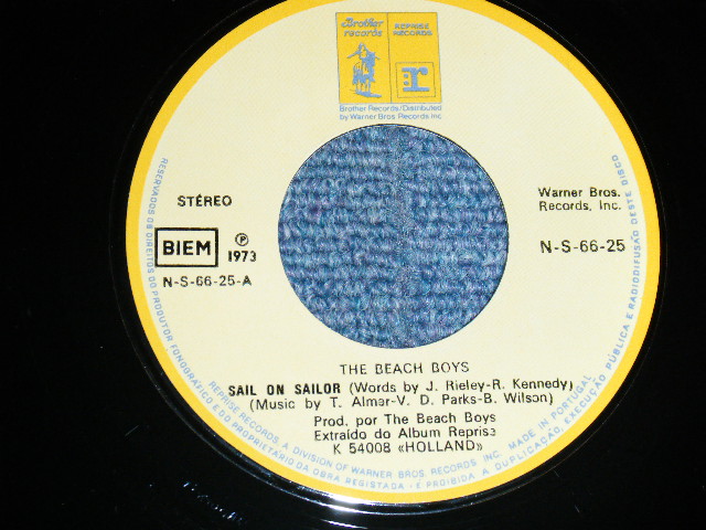 THE BEACH BOYS - A) SAIL ON SAILOR B) ONLY WITH YOU(Ex++/MINT-) / 1973 PORTUGAL ORIGINAL Used 7" Single With PICTURE SLEEVE[BROTHER N-S-66-25]