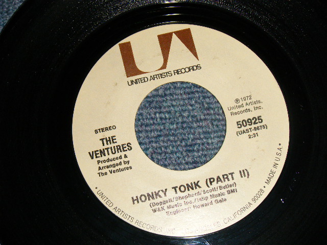 THE VENTURES - A)HONKY TONK (Part 1) B)HONKY TONK (Part 2) (MINT-/MINT-) / 1972 US AMERICA ORIGINAL "STOCK COPY" Used 7" SINGLE [U-A / UNITED ARTISTS 50825]