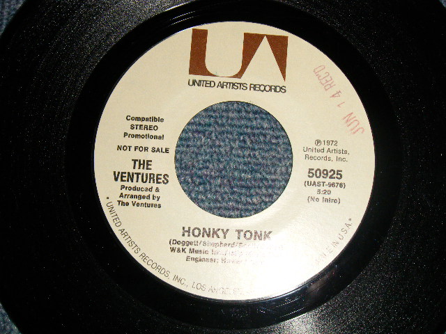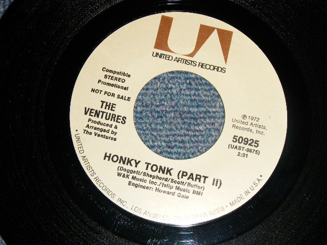 THE VENTURES - A)HONKY TONK (5:20 Version) B)HONKY TONK (PART II 23:31 Version) (MINT/MINT) / 1972 US AMERICA ORIGINAL "PROMO COPY" Used 7" SINGLE [U-A / UNITED ARTISTS 50825]