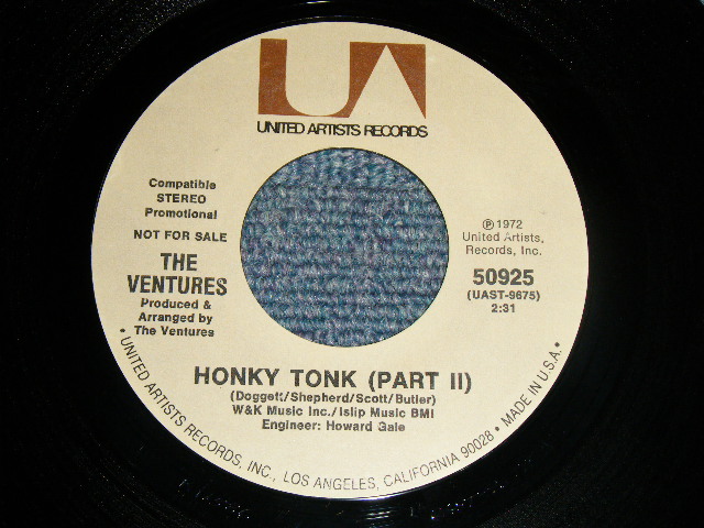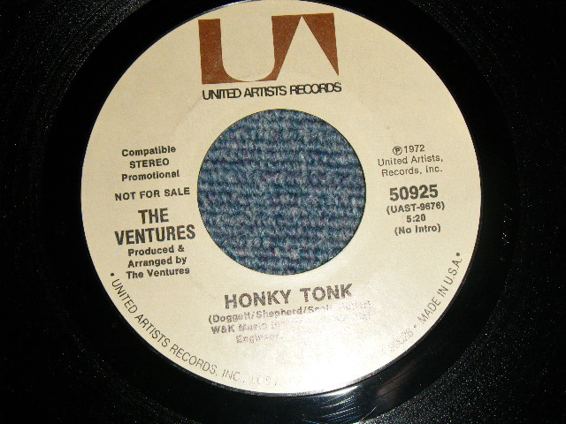 THE VENTURES - A)HONKY TONK (5:20 Version) B)HONKY TONK (PART II 23:31 Version) (MINT/MINT) / 1972 US AMERICA ORIGINAL "PROMO COPY" Used 7" SINGLE [U-A / UNITED ARTISTS 50825]