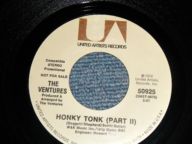 THE VENTURES - A)HONKY TONK (5:20 Version) B)HONKY TONK (PART II 23:31 Version) (MINT-/MINT-) / 1972 US AMERICA ORIGINAL "PROMO COPY" Used 7" SINGLE [U-A / UNITED ARTISTS 50825]