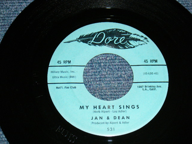 JAN & DEAN - A) THERE'S A GIRL B) MY HEART SINGS (Ex+++/Ex+++) / 1959 US AMERICA ORIGINAL Used 7"SINGLE[DORE 531]