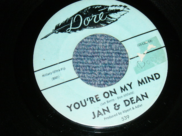 JAN & DEAN - A) CLEMENTINE B) YOU'RE ON MY MIND (Ex+/Ex+) / 1959 US AMERICA ORIGINAL Used 7"SINGLE[DORE 539]