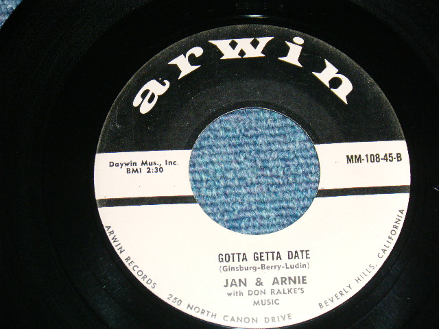 JAN & ARNIE - A) JENNIE LEE B) GOTTA GETTA DATE (Ex++/Ex++) / 1958 US AMERICA ORIGINAL Used 7"SINGLE[ARWIN MM-108-45]