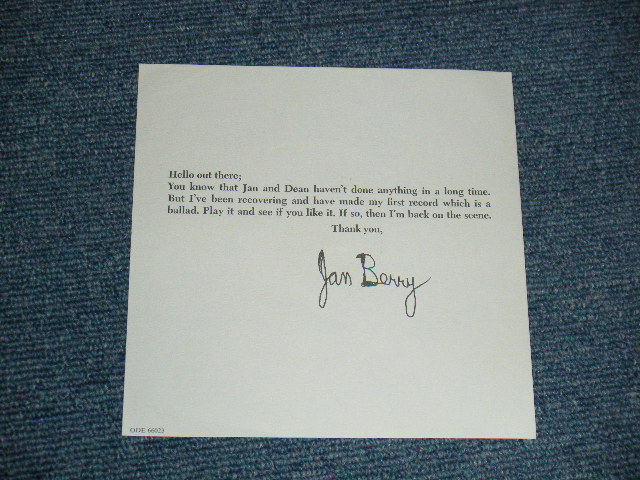 JAN BERRY - A) MOTHER EARTH B) BLUE MOON SHUFFLE (MINT/MINT) / 1972 US AMERICA ORIGINAL "PROMO" "With PROMO SHEET" " Used 7" SINGLE[ODE ODE-66023]