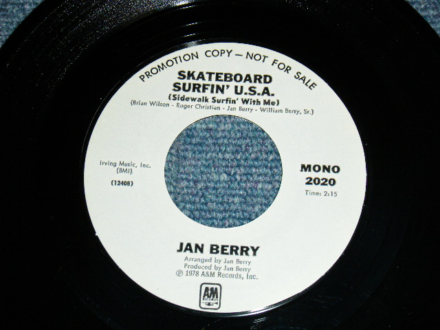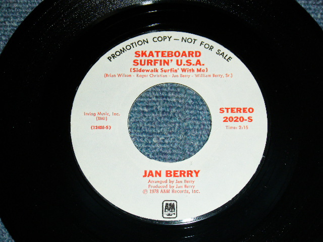 JAN BERRY - SKATEBOARD SURFIN’ USA A)MONO B)STEREO (MINT/MINT) / 1978 US AMERICA ORIGINAL "PROMO ONLY SAME FLIP M/ST" Used 7" SINGLE[A&M 2020]