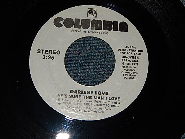 DARLENE LOVE - He's Sure The Man I Love A)STEREO B)STEREO (MINT/MINT) / 1988 US AMERICA ORIGINAL "PROMO ONLY ST/ST" Used 7" Single[COLUMBIA 38-07984]